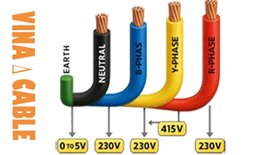 Cáp điện 3 pha 5 lõi gồm 3 lõi pha 3P , 1 lõi trung tính , một lõi tiếp đất